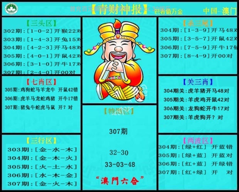 | 307期 | 2尾-3尾-5尾 | 0尾-2尾-7尾 | 1尾-4尾-5尾 |
