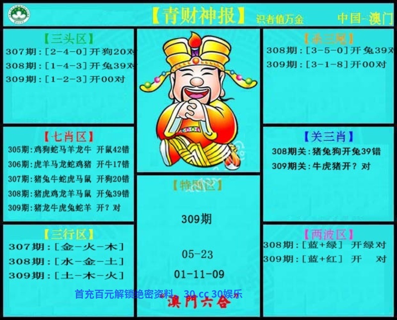| 309期 | 0尾-3尾-5尾 | 1尾-2尾-6尾 | 3尾-6尾-7尾 |